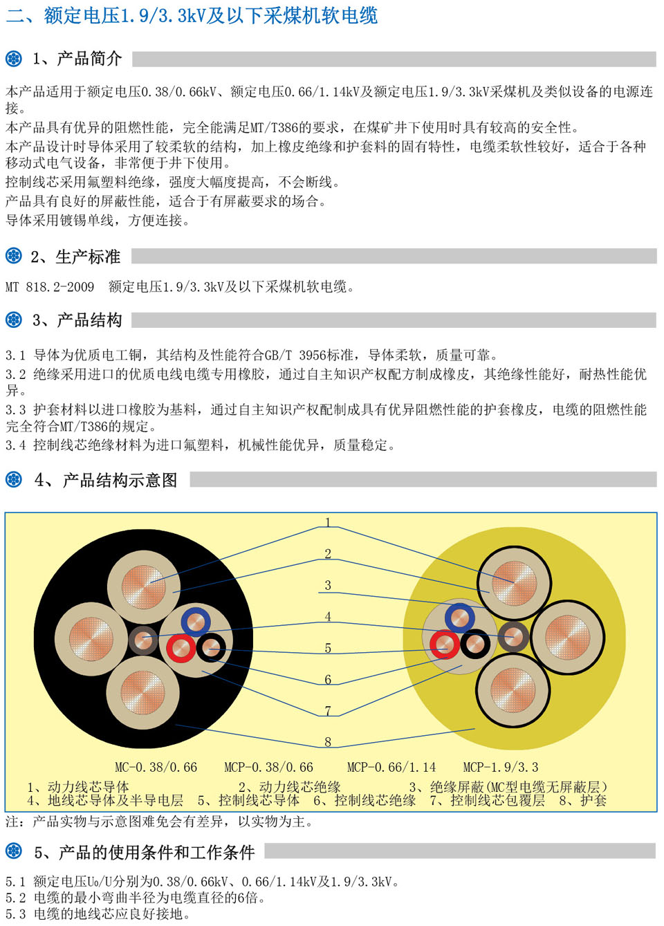 额定电压1.9/3.3kV及以下采煤机软电缆