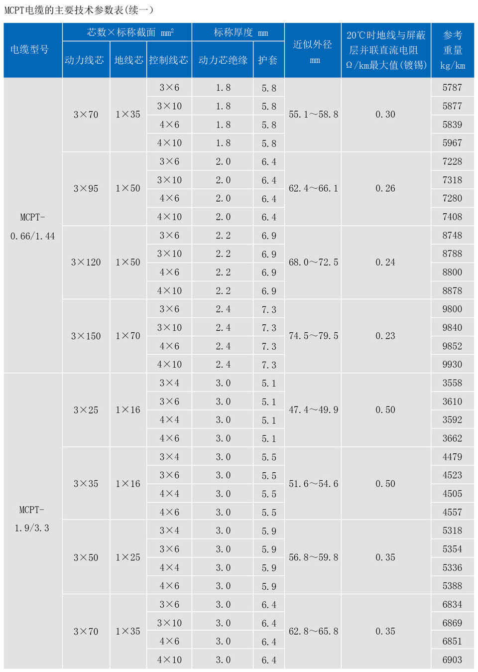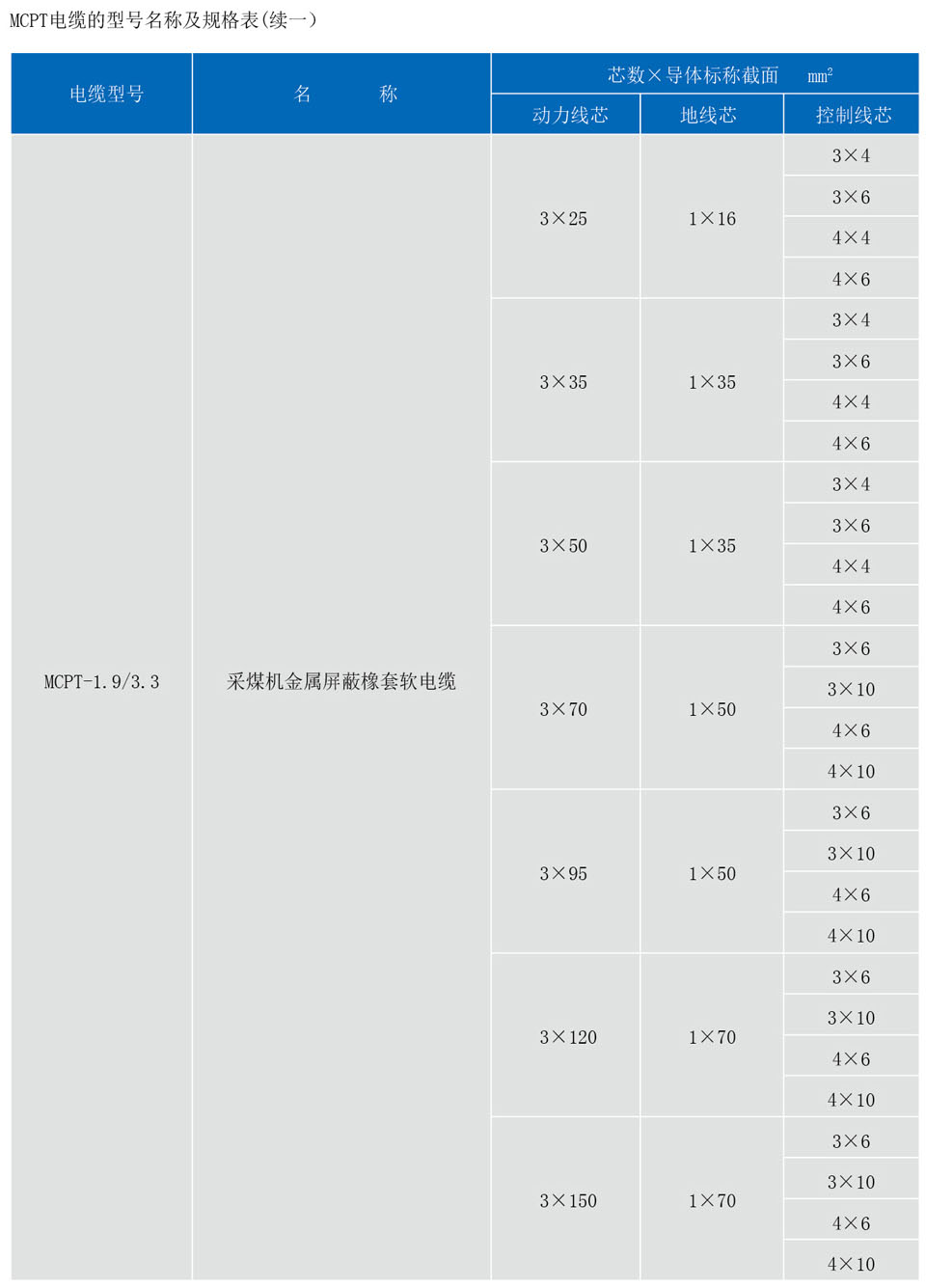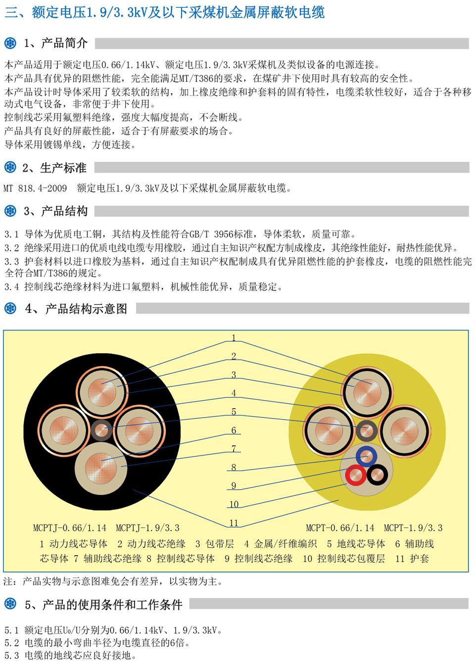 额定电压1.9/3.3kV及以下采煤机金属屏蔽软电缆