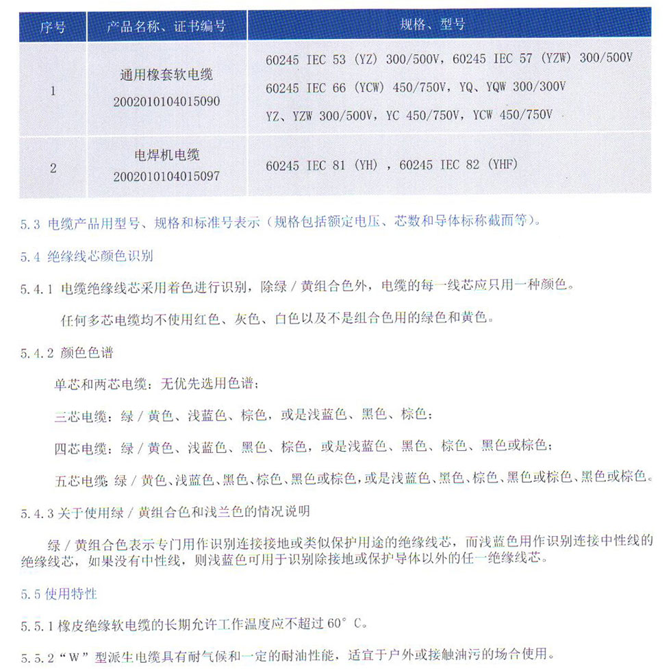橡皮绝缘软电缆、橡皮绝缘电线