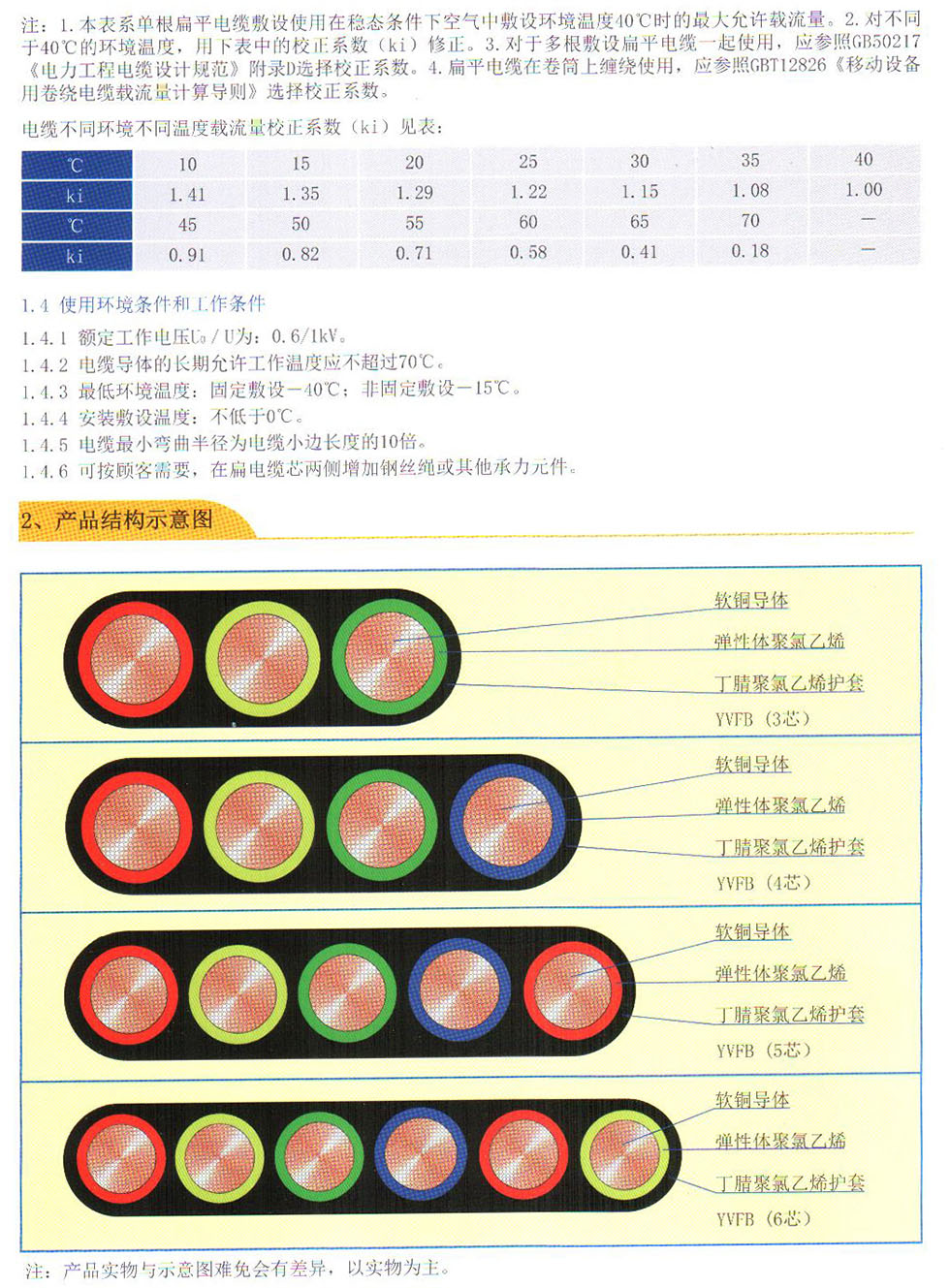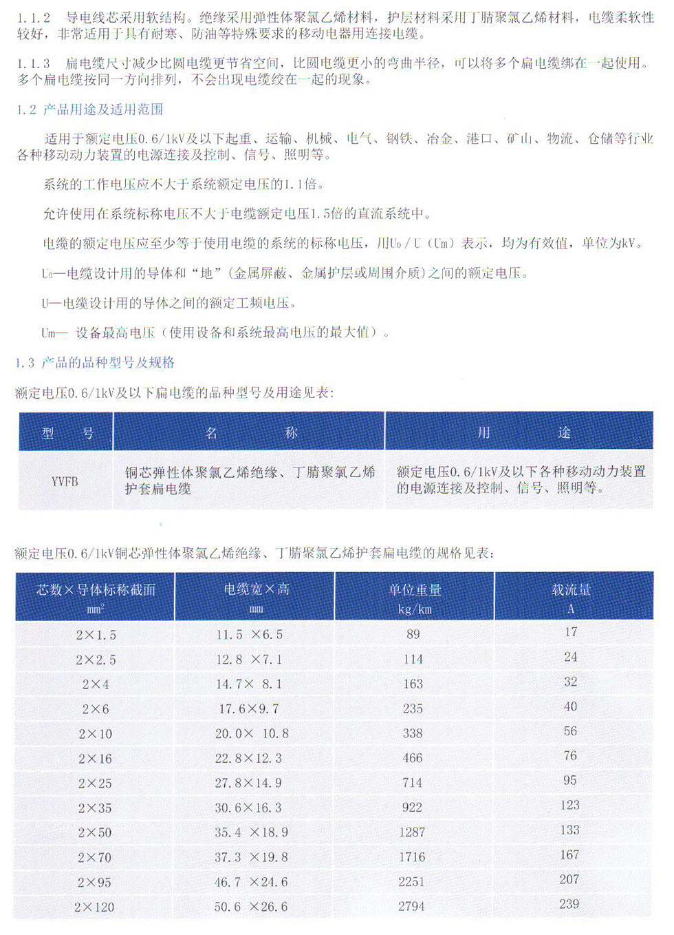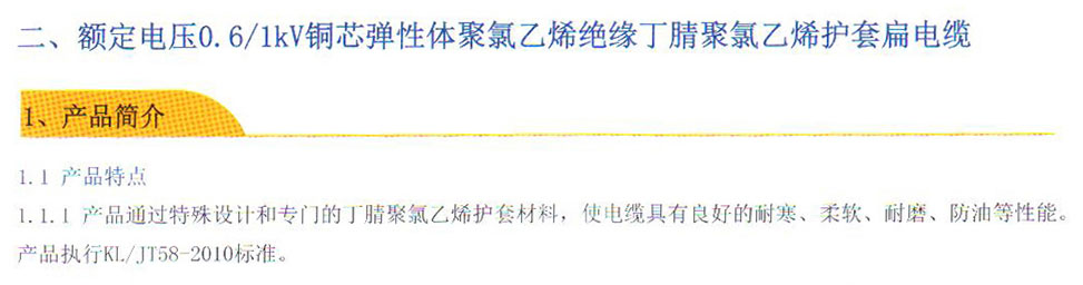 额定电压0.6/1kv铜芯弹性体聚氯乙烯绝缘丁腈聚氯乙烯护套扁电缆